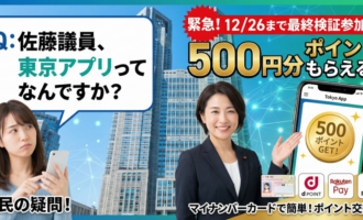 東京アプリで500ポイント!12/26まで都民参加型“最終検証”…