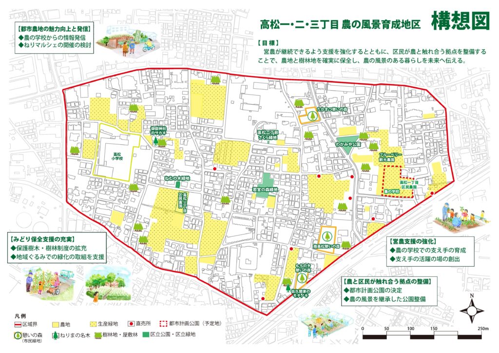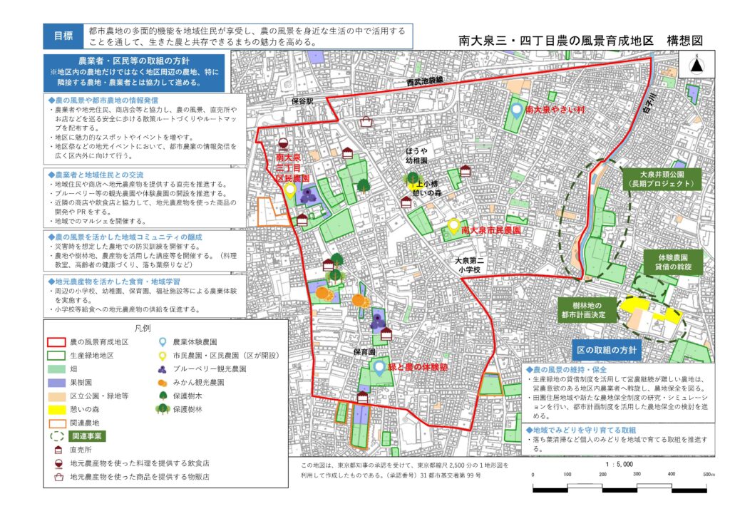 - 営農継続の支援と、区民が農に触れ合う拠点整備で、農地・樹林地を確実に保全。