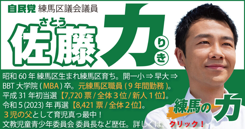 練馬区議会議員の佐藤力です。