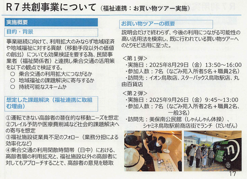 - 福祉施設との連携による「お買い物ツアー」など新たな取組を実施