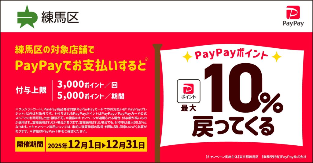 物価高騰の影響を受ける区民の皆さんの暮らしを支援するため、対策を要望してきた結果、今年度2回目となる「PayPayキャッシュレス決済ポイント還元キャンペーン」が実施されることとなりました。