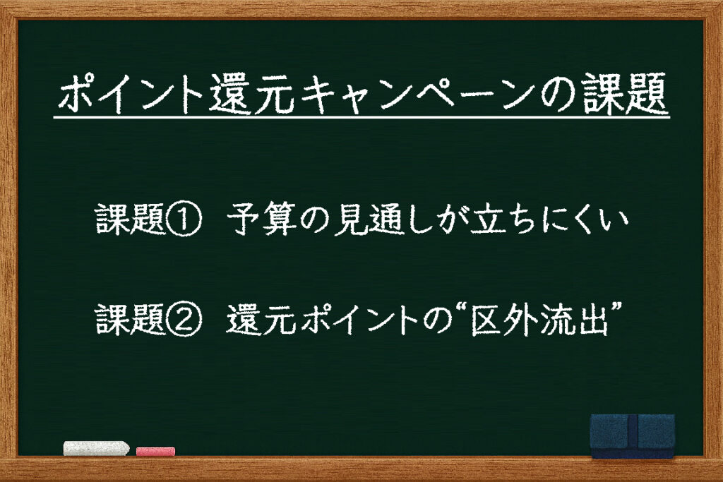 付与されたポイントは区外でも使用できるため、せっかくの財政投入が地元で循環しきらない可能性があります。