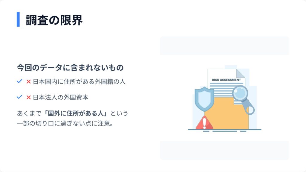 つまり、この調査は「外国人による取得の全体像」ではなく、“国外住所者”に限った一部の切り口である点は、正しく理解する必要があります。