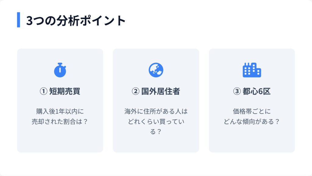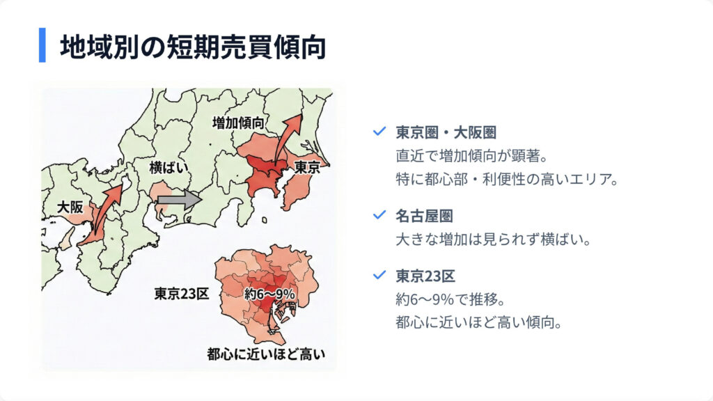 結論から言うと、短期売買は東京・大阪などの都市部、その中でも中心部ほど高い(または増加しやすい)という傾向が確認されています。