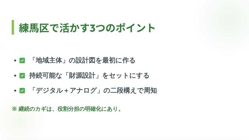 「行政が全部やる」でもなく、「地域に丸投げ」でもない。この“中間の設計”が、非常に参考になりました。
