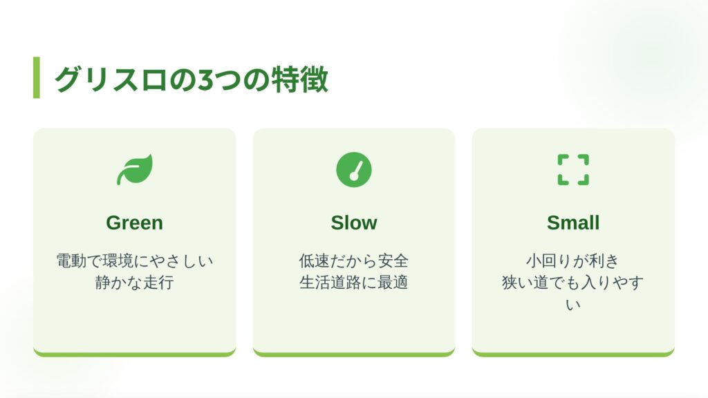 これまでグリスロは、観光地の周遊手段として注目されることも多くありましたが、いまはそれだけではありません。高齢者の通院や買い物など、地域の生活を支える交通手段としての役割が重視されるようになっています。