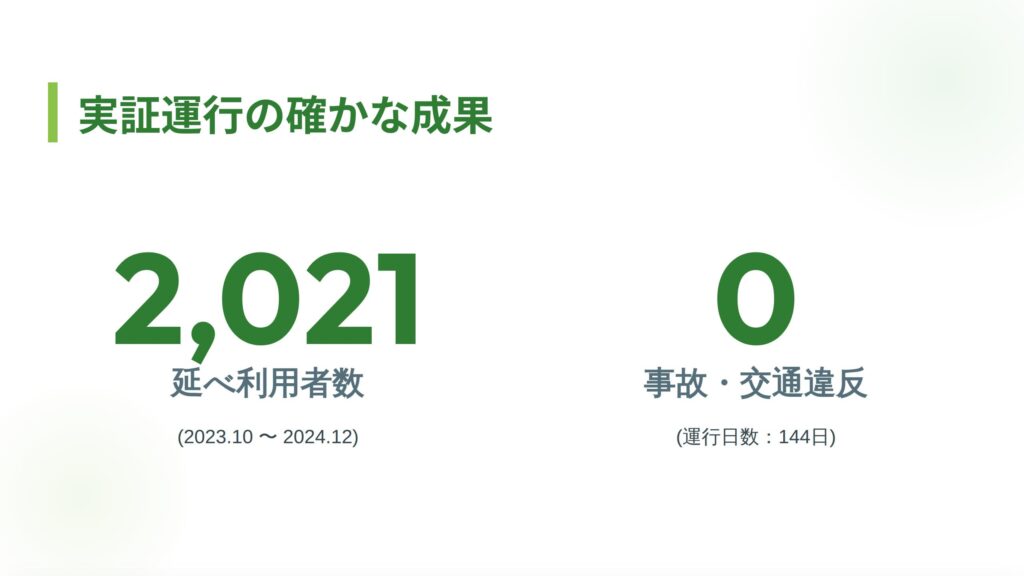 実証運行は、一定期間しっかり回して、数字も出ています。