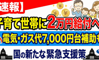 【速報】子育て世帯に2万円給付へ!電気・ガス代7,000円台補助…